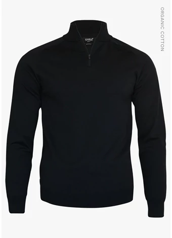 This knit features a modern fit, a ¼-zip funnel neck and is made in fine-gauge premium organic cotton and nylon yarns for a more refined style, providing soft comfort and excellent shape-retention."
