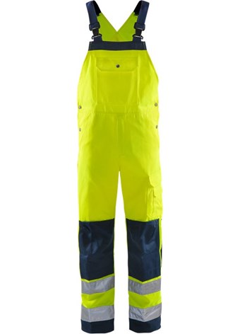 Adjustable elasticated braces. Bib pocket with flap and button. 2 side pockets. Back pockets. Waist opening with buttons. D-ring. Leg pocket with flap and velcro fastening, phone pocket with flap and velcro fastening. Folding rule pocket with pen pocket, and button and loop for sheath knife. Knee pockets with opening for height-adjustable knee pads.