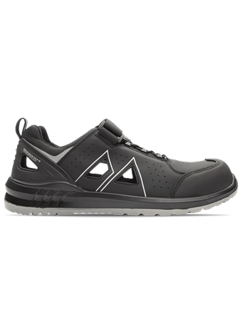 Monitor Radar is another new model in the Dynamic series! Radar is a new sporty safety shoe made with injection technology and has a ventilated microfiber with large ventilated surfaces on both sides. The outsole is made of polyurethane with 2 densities, and the midsole has a softness of 50 shore A, which together with Monitors SS 2.0-mind sole gives a fantastic pleasant and shock-absorbing shoe despite the slim outsole. Radar has a new type of lace system where we have combined the classic Velcro strap with a laces that makes the shoe comfortable as well as easy to put on and off. The shoe has moisture -absorbing textiles on the inside. The toe cap is made of composite and the nail protection is a soft apt protection.