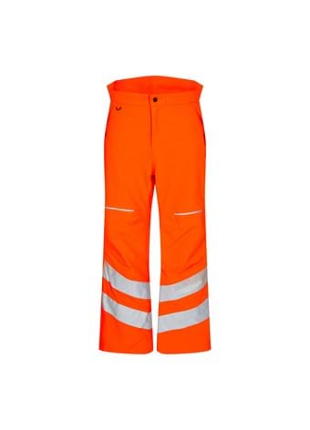 Fluorescent breathable, water and windproof winter pants with taped seams. Two front pockets closed with velcro. D-ring at the front to apply e.g. ID card. Extra high lumbar and adjustable elastic in the waist as ensure maximum comfort. Hidden two -way zippered zipper which gives access to interior clothing as well as snow trap/porch in legs. Knee reinforcement. Reflections on the lower leg. Clothing class 3. Tested after 50 wash.