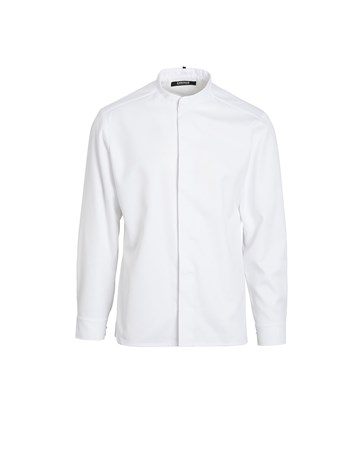 Tencel chefs/service shirt with long sleeves. Sustainable fabric. Modern Fit - Optimal fit. Chinese collar. Tensed front with easy approach to push buttons. Internal hidden pen pocket in the front panel, hidden push buttons, incisions on the back, cuffs, slit in the sides, neck strap for slack apron.