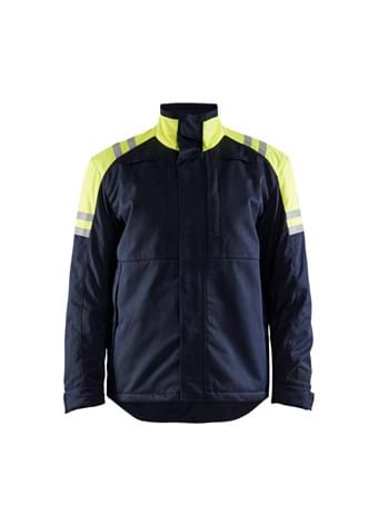 Flame retardant, lined winter jacket in 1519 quality, an inherent Class E3 fabric specially designed for work in metal industries that deal with molten iron. The 360-degree visible but not hi-vis certified winter jacket is designed to protect against splashing from molten metal, and radiant heat, while the lining keeps you warm in cold environments.Sewn-on, optimally placed reflective details, pre-bent sleeves, extended back, inside pocket, inset pockets and holders for gas detector, oxygen meter and microphone. Certified to EN 1149-5, EN13034, EN ISO 11612, EN ISO 11611, IEC 61482-2, ATPV: 40cal/cm², ELIM: 37cal/cm².