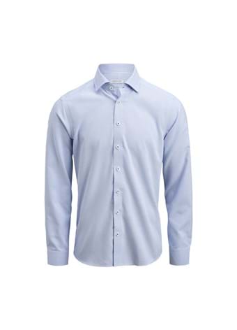 2905501A micro-patterned shirt in a jacquard weave made from organic cotton and recycled polyester. It features our popular soft button down collar and discreet details such as contrasting buttonhole thread. Soft cuffs give the shirt a smart and modern look. When you get the shirt in your hand, you will immediately recognize that there is more to it than meets the eye. The feather-light weight, silky feel and incredible stretch effect for your comfort make this shirt a master of performance. The shirt is also easy to care for, so you can simply wash and wear it if you wish. Available in three models.