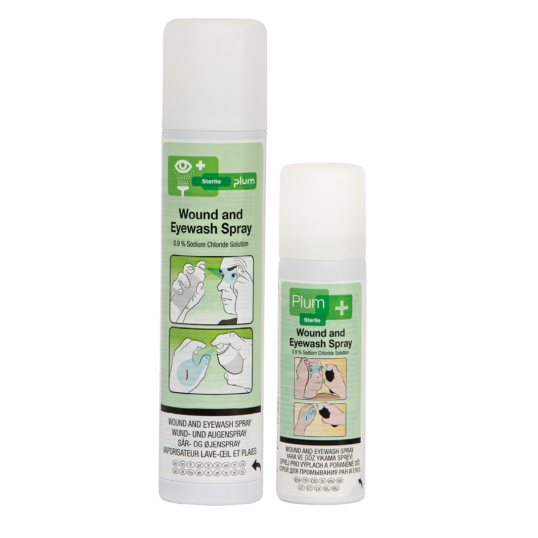 45530Med Plum Sår- og Øjenskyllespray får du øjeblikkelig pleje til mindre ulykker såsom sår og skrammer på huden eller støv og snavs i øjnene. Den hjælper dig med at minimere risikoen for yderligere infektion eller beskadigelse.