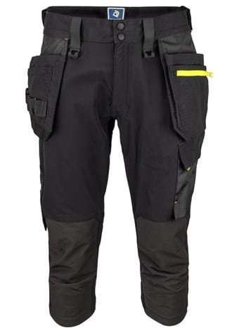 Knickers i fuld stretch, der giver maksimal bevægelsesfrihed og komfort. Moderne pasform. Siderne øverst er ikke i stretch for at give stabilitet til bukserne. Hængelommer med ekstra rum og indvendig Cordura®-forstærkning. Ved at fjerne kontrastsømmen på bagsiden af hængelommerne, kan disse fjernes helt, hvis det ønskes Ventilationsåbninger bag i taljen. Rummelige lårlommer på begge sider. Venstre lårlomme til værktøj og kuglepenne, en telefonlomme med magnetlukning og holder til fastgørelse af ID-kort. På højre sidelomme til tommestok og lomme til værktøj med knivknap. Bredere bælteløkke bagpå for at forhindre tryk fra bæltet. Baglommer i Cordura®, den ene med klap og magnetlukning. Forbøjede knæ. Indvendige lommer til knæbeskyttere, justerbar i to højdeniveauer. Hængelommer og knæ er forstærket med Cordura® for øget holdbarhed. Mulighed for at fastgøre MOLLE-system på begge sider.