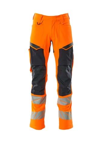 Strækstoffet er elastisk i alle retninger, hvilket giver en unik bevægelsesfrihed, hvor intet strammer eller generer. Det multifunktionelle strækstof kombinerer en lav vægt med en meget høj slidstyrke, samtidig med det er vandafvisende. Ergonomisk formede bukseben er konstrueret efter kroppens naturlige bevægelser. Forstærket tommestoklomme. Forberedt til hængelommer 19450-126, der påsættes med knapper. Knælommer i slidstærk CORDURA® er regulerbare, så knæpuderne får den optimale placering. Samcertificeret til brug med MASCOT knæpudetype SHORT eller LONG, da knæpudelommen kan højdejusteres.