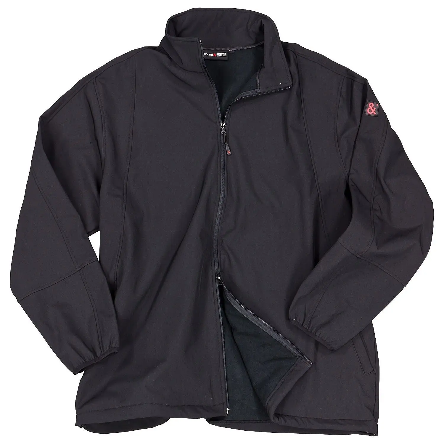 MM54105En tynd og let sort softshell jakke i store størrelser. Softshell jakken er vandafvisende, vindtæt og åndbar og så har den tapede sømme. Softshell jakken har to skrålommer foran, der lukkes med lynlås samt to inderlommer. Elastanen gør jakken mere smidig. Indersiden af jakken består af et tyndt fleece lag.