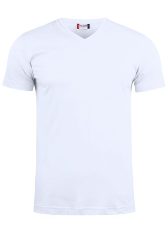 T-shirt med V-hals i en tættere pasform, nakkebånd bagpå, elastan i halsribben, rundstrikket og unisex model.