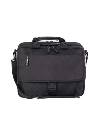 158245Mappe med klap i siden. Stort rum med bånd til fastsættelse af laptop, samt lomme med lynlås. Rum til dokumenter samt A4-mapper. To lommer med lynlåse på begge sider. Aftagelig skulderrem. Volume cirka 20 liter. Måler 42x16x32 cm.