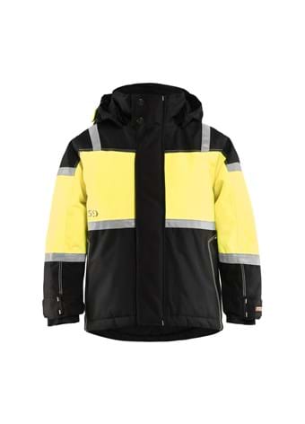4858-1977-9933Vinterjakke med vatteret for. Justerbar og aftagelig hætte. Refleks på skuldre, ærmer og omkring taljen. Justerbar ærmeafslutning med indvendig manchet med tommelfingerhul. Fleece i kraven. Jakken er vandtæt og vindtæt med tapede sømme.
