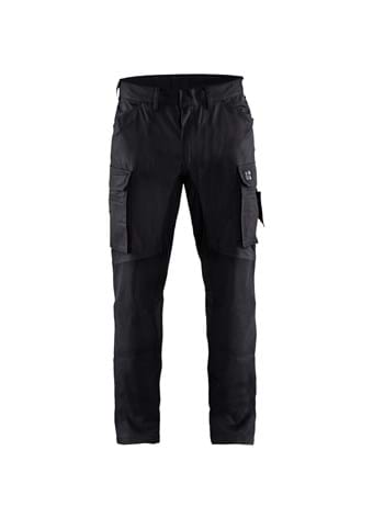 Fleksible og slidstærke brandhæmmende service bukser i inherent materiale med stretch paneler, der er specielt velegnede, hvis du udfører service arbejde både indendørs og udendørs i varmere miljøer. Disse bukser har en smal pasform og stretch paneler i skridtet, bagdelen og knæ, hvilket giver dem endnu større fleksibilitet og bevægelsesfrihed. Certificeret i henhold til EN 1149-5, IEC 61482-2, klasse 1, EN ISO 11612 A1, B1, C1, F1. Arc rating: 10,7 cal/cm² (gælder for stretch materialet).