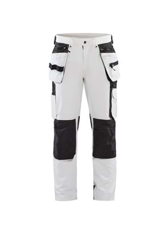 1079-1645-1098Disse smarte og komfortable maler bukser med koniske ben giver stor bevægelsesfrihed og er ekstremt bløde. Bukserne er designet til hårdt arbejde uden at gå på kompromis med komfort og pasform. Materialet er et glat 4-vejs stretch materiale, der er stærkt og fleksibelt i alle retninger. Bukserne har avancerede detaljer og specialdesignede lommer til børster, kniv og spartel samt sømlommer. Knælommerne er forstærket med CORDURA® stretch materiale på ydersiden og stretch materiale på indersiden for øget bevægelsesfrihed. Blødt mesh i knæhasen for god ventilation. Benafslutning med forstærkning på bagsiden giver effektiv beskyttelse mod slitage.