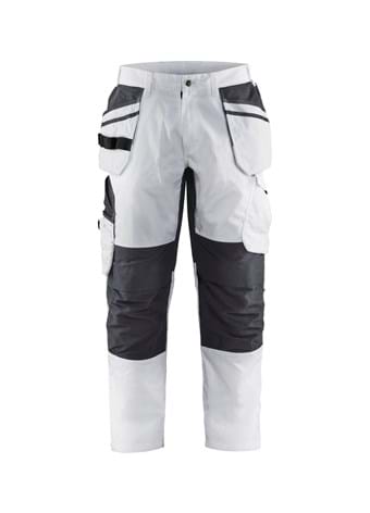 1096-1330-1098Smarte funktionelle malerbukser med sømlommer, der tåler at blive brugt. Stilfuldt designet bukser, ekstremt slidstærke, men stadig lette og fleksible. Materialet er let ripstop materiale med god rivfasthed og en evne til at modstå slitage. Modellen har stretch paneler i skridtet, på knæ og på læg for maksimal fleksibilitet. Knælommer med indgang foroven i CORDURA® stretch materiale både indvendigt og udvendigt, giver en mere ergonomisk pasform. Bukserne har sømlommer og CORDURA®-forstærket spartellomme, knivlomme, diskrete reflekterende detaljer og en indvendig mesh telefonlomme.