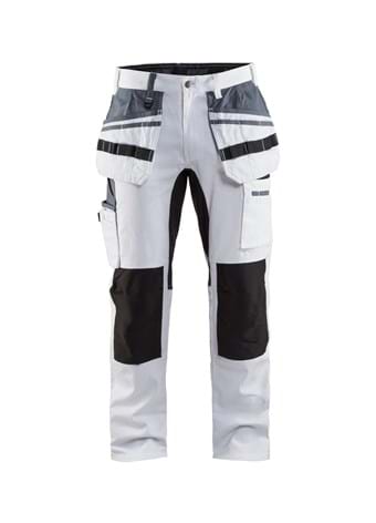 1910-1000-1099Moderne og komfortable maler bukser med værktøjslommer, udvendige knælommer og stretch zoner på skridt, knæ, bagdel og læg for øget bevægelsesfrihed og komfort. Materialet har fremragende absorberingsegenskaber takket være den høje andel af bomuld. Bukserne har mange funktionelle lommer og en specialdesignet, forstærket lomme til malerværktøj. Malerværktøjslomme og sømlommer er forstærket med CORDURA® stof og knæene med stretch CORDURA® for øget komfort.