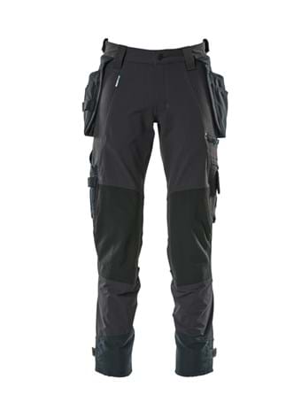 Strækstoffet er elastisk i alle retninger, hvilket giver en unik bevægelsesfrihed, hvor intet strammer eller generer.; Det multifunktionelle strækstof kombinerer en lav vægt med en meget høj slidstyrke, samtidig med det er vandafvisende.; Velindrettede hængelommer af slidstærk CORDURA® kan nemt lynes af, når de ikke skal bruges, hvis de skal tømmes, eller hvis bukserne skal vaskes.; De elastiske knælommer er lavet af en kombination af CORDURA®, Kevlar® og den exceptionelt slidstærke fiber Dyneema®.; Effektiv ventilation ved knæområdet via lynlås på siden af benet.; Ekstra synlig for omgivelserne ved hjælp af reflekseffekter.; For at opnå størst mulig komfort anbefaler vi, at du vælger knæpuder 00718-100 til denne model.; Samcertificeret til brug med MASCOT knæpudetype, LONG.