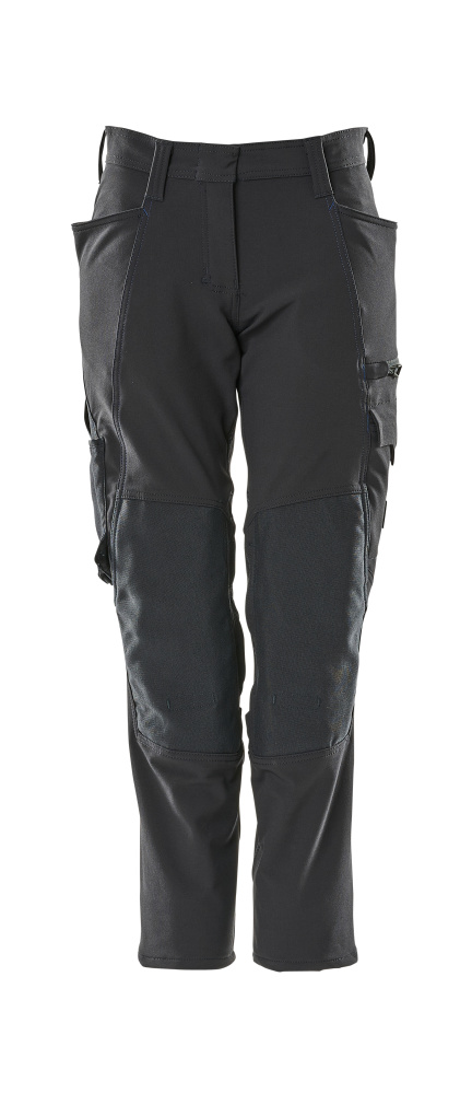 Diamond fit er specielt designet til damer med mere end 20 centimeters forskel på livvidden og hoftevidden.; Strækstoffet er elastisk i alle retninger, hvilket giver en unik bevægelsesfrihed, hvor intet strammer eller generer.; Det multifunktionelle strækstof kombinerer en lav vægt med en meget høj slidstyrke, samtidig med det er vandafvisende.; Effektiv ventilation ved knæområdet via lynlås på siden af benet.; Produktet kan industrivaskes.; Knælommer i slidstærk CORDURA® er regulerbare, så knæpuderne får den optimale placering.; Samcertificeret til brug med MASCOT knæpudetype SHORT eller LONG, da knæpudelommen kan højdejusteres.
