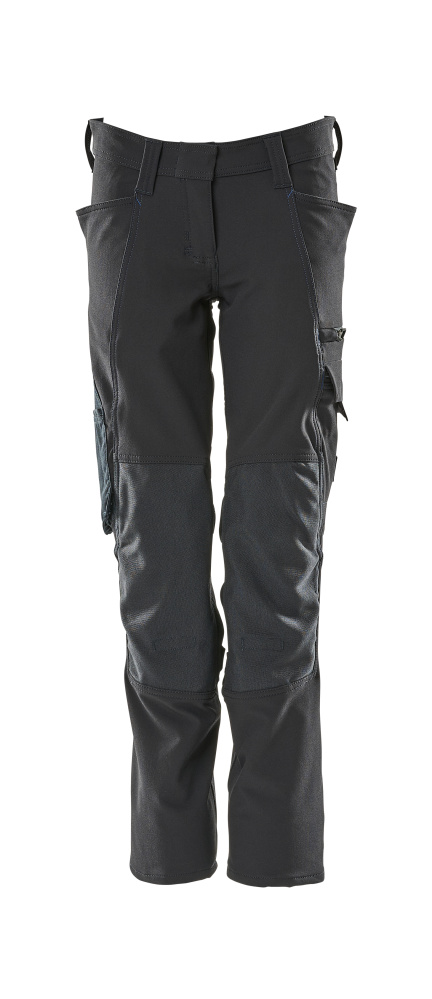 Pearl fit er specielt designet til damer med mindre end 20 centimeters forskel på livvidden og hoftevidden.; Strækstoffet er elastisk i alle retninger, hvilket giver en unik bevægelsesfrihed, hvor intet strammer eller generer.; Det multifunktionelle strækstof kombinerer en lav vægt med en meget høj slidstyrke, samtidig med det er vandafvisende.; Effektiv ventilation ved knæområdet via lynlås på siden af benet.; Produktet kan industrivaskes.; Knælommer i slidstærk CORDURA® er regulerbare, så knæpuderne får den optimale placering.; Samcertificeret til brug med MASCOT knæpudetype SHORT eller LONG, da knæpudelommen kan højdejusteres.