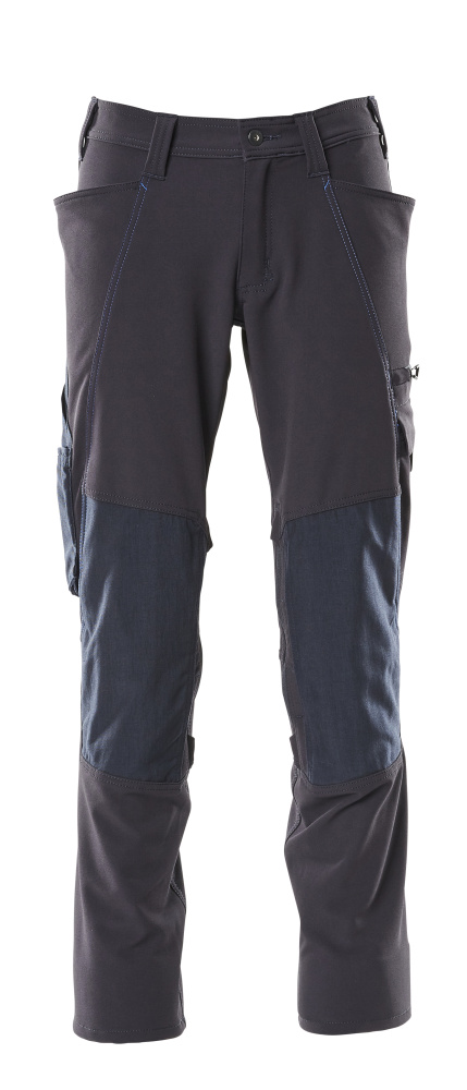 Strækstoffet er elastisk i alle retninger, hvilket giver en unik bevægelsesfrihed, hvor intet strammer eller generer.; Det multifunktionelle strækstof kombinerer en lav vægt med en meget høj slidstyrke, samtidig med det er vandafvisende.; Produktet kan industrivaskes.; Den lave talje med formskåret linning sikrer, at bukserne følger og støtter alle kroppens bevægelser.; Effektiv ventilation ved knæområdet via lynlås på siden af benet.; Knælommer i slidstærk CORDURA® er regulerbare, så knæpuderne får den optimale placering.; Som standard i tre forskellige benlængder, så du kan vælge den bedste pasform og optimale placering af detaljer netop til dig.; Samcertificeret til brug med MASCOT knæpudetype SHORT eller LONG, da knæpudelommen kan højdejusteres.