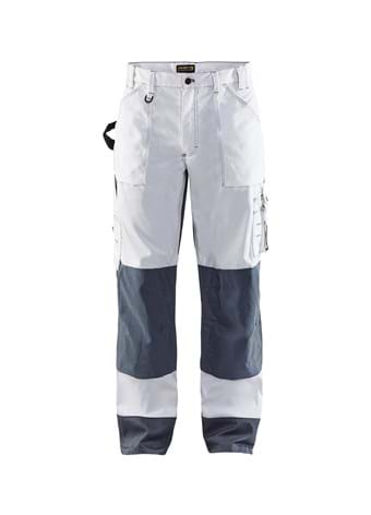 Skønne håndværker bukser med god pasform og uden sømlommer. Buksen kan benyttes til forskellige typer af arbejde. knælommerne i Cordura®. To baglommer med læg. Hammerholder og mejsellomme. Forstærket tommestoklomme med blyantlomme og knivholder.