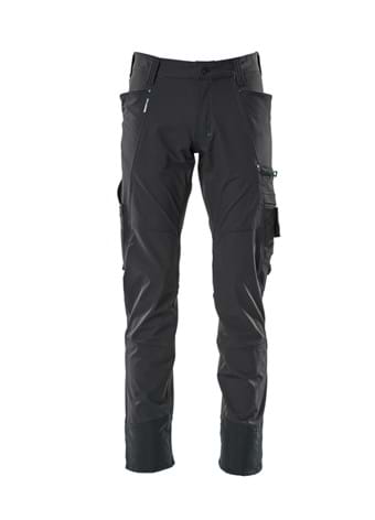 Strækstoffet er elastisk i alle retninger, hvilket giver en unik bevægelsesfrihed, hvor intet strammer eller generer.; Det multifunktionelle strækstof kombinerer en lav vægt med en meget høj slidstyrke, samtidig med det er vandafvisende.; Den lave talje med formskåret linning sikrer, at bukserne følger og støtter alle kroppens bevægelser.; Ergonomisk formede bukseben er konstrueret efter kroppens naturlige bevægelser.; Aftagelig ID-kortholder som nemt fastgøres på lårlomme eller D-ring - kan desuden anvendes på alle produkter med D-ring.
