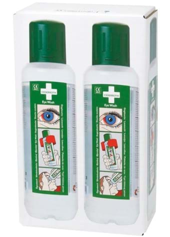 345.80Øjenskylleflasker med ergonomisk øjenkop. 0,9% sterilisotonisk natriumklorid opløsning. Let håndterbar og med god væskestrømning. Til engangsbrug. Indhold: 2 stk 500 ml øjenskylleflasker.