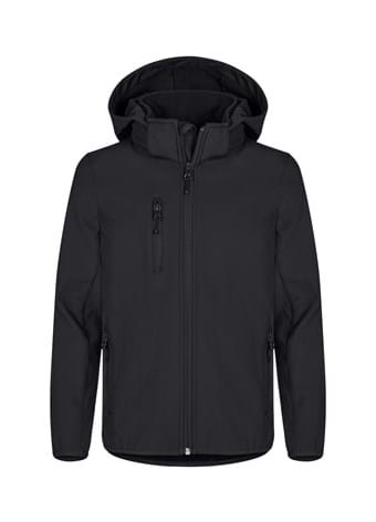 3-lags softshell jakke med hætte af recycled polyester. Tone-i-tone omvendt lynlås midt foran og 3 udvendige lommer. 2 inderlommer. Børnesikker aftagelig hætte. Elastisk tape forneden og i ærmeender.
