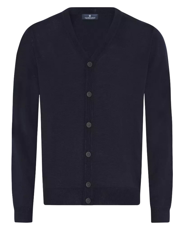 Cardigan med v-udskæring, knapper ved stolpe og rib ved