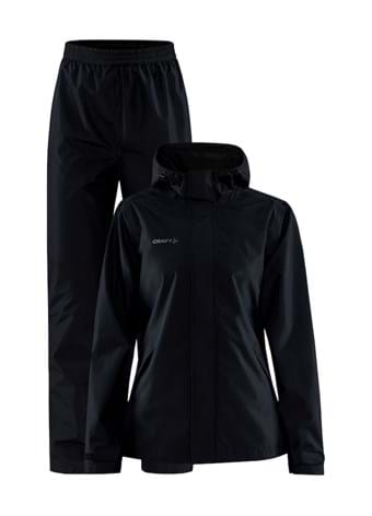 1911775-999000Alsidig regnjakke og -bukser med meshforing, to sidelommer, justerbar løbegang forneden og i hætte samt velcro ved ærme- og benenden.