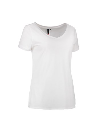 Fitted T-shirt i casual design. Perfekt udskåret V-hals T-shirt med smal rib i hals og ærmer samt cool stikningsdetaljer ved ærmegab og i bunden.