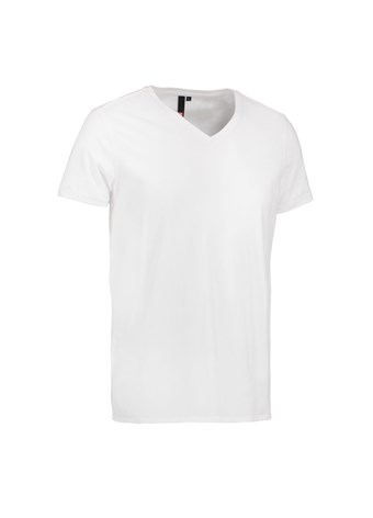 Fitted T-shirt i casual design. Perfekt udskåret V-hals T-shirt med smal rib i hals og ærmer samt cool stikningsdetaljer ved ærmegab og i bunden.