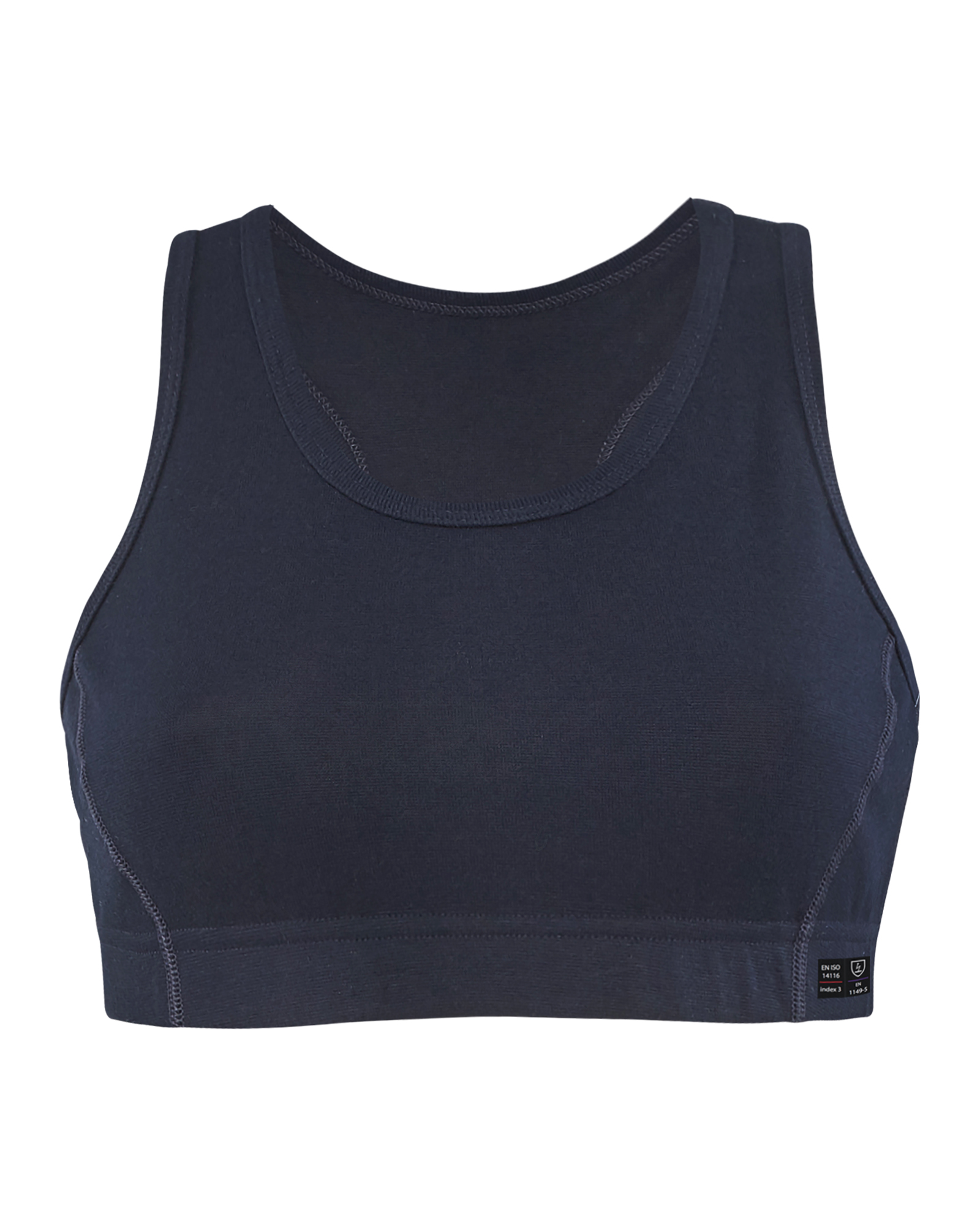 1825-1722-8900Flammehæmmende sports-bh lavet af dobbelt stof. Certificeret i henhold til EN ISO 14116 indeks 3 / 5H / 40 og EN 1149-5.