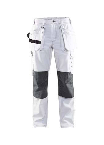 Maler buks med funktionaliteter, der giver komfort, mens du arbejder. Bomuldsmaterialet har fremragende absorberende egenskaber og forhindrer maling i at farve din hud. Forstærkede knælommer, baglommer og lomme i CORDURA® til malerværktøj.