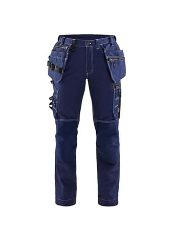 Disse håndværkerbukser i damemodel er lavet i 100% bomuld. Stærk, komfortabel og fuld af praktiske detaljer, der hjælper dig gennem hele din arbejdsdag. Trods det slidstærke materiale er bukserne luftige og fleksible. For at bukserne føles ekstra lette og komfortable at have på, er der 4-vejs stretchpaneler bagpå, på frontlommer og i knæhasen. De har også knælommer i CORDURA®-stretch, hvilket giver en uovertruffen komfort. Findes også i herremodel 1590.