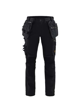 7130-1370-9999Disse håndværkerbukser i damemodel er lavet i 100% bomuld. Stærk, komfortabel og fuld af praktiske detaljer, der hjælper dig gennem hele din arbejdsdag. Trods det slidstærke materiale er bukserne luftige og fleksible. For at bukserne føles ekstra lette og komfortable at have på, er der 4-vejs stretchpaneler bagpå, på frontlommer og i knæhasen. De har også knælommer i CORDURA®-stretch, hvilket giver en uovertruffen komfort. Findes også i herremodel 1790.