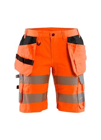 7186-1811-5300Komfortable og fleksible high vis shorts designet til kvinder. De har stretchpaneler i skridtet og på bagdelen. Reflekser, baglomme med klap, lårlomme, telefonlomme, ID-kortlomme samt en CORDURA®-forstærket tommestoklomme og sømlommer. Certificeret i henhold til EN ISO 20471 Klasse 1. Findes også i herremodel 1586.