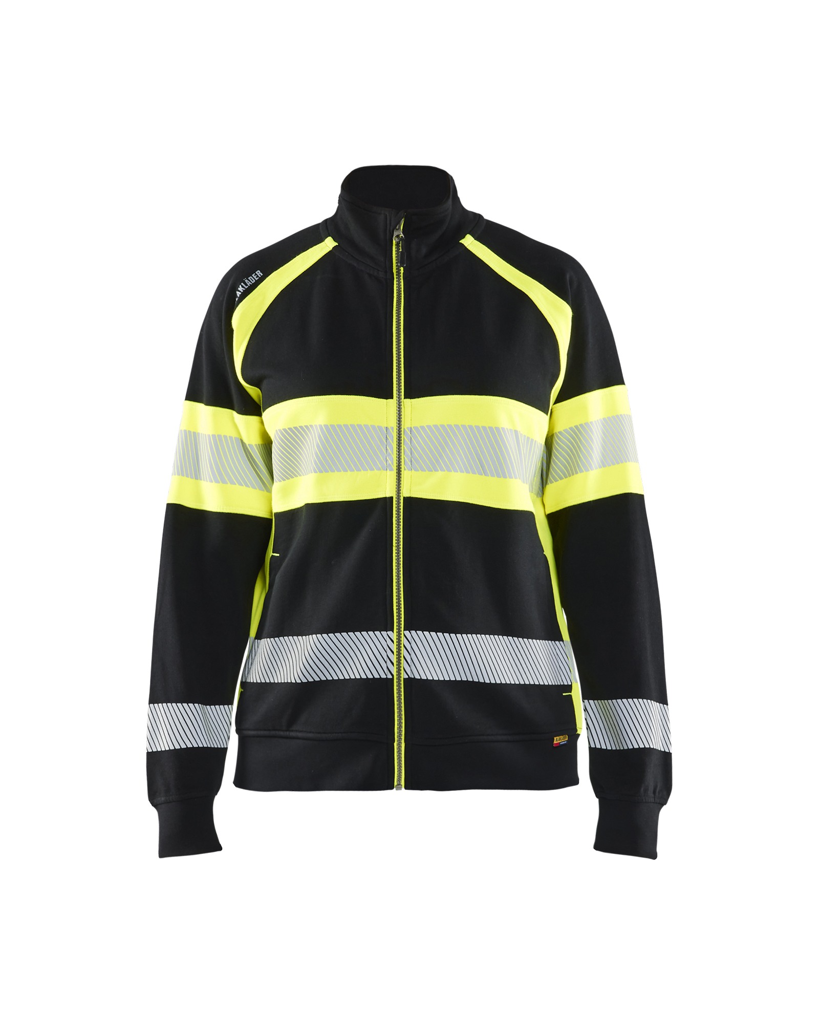 En blød, behagelig high vis sweatshirt i skøn bomuldskvalitet med brudte transferreflekser for ekstra god stretch og åndbarhed. Med pasform til kvinder, sidelommer, høj krave, lynlås foran og manchetter nederst og i ærmerne for ekstra komfort. Sweatshirtens mørke del er 100% bomuld og hi-vis delen er 100% polyester. Findes også i herremodel 3551.