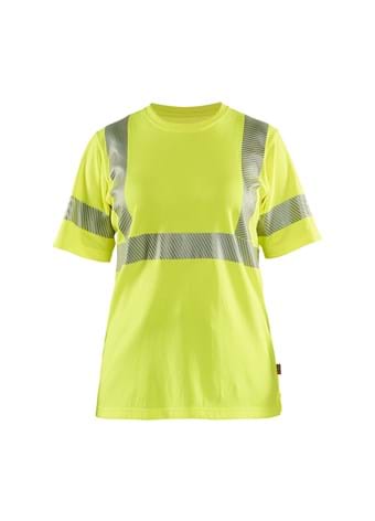 3502-2537-3300T-shirt med fleksible reflekser for ekstra synlighed. T-shirtens materiale har en rigtig god sugeevne, hvilket gør, at sveden transporteres ud fra indersiden af ??t-shirten og får den til at lægge sig udenpå. Når først fugten er på ydersiden, tørrer fugten hurtigt, hvilket skaber et behageligt klima for kroppen. Findes også i herremodel 3522. Certificeret i henhold til EN ISO 20471 klasse 2.