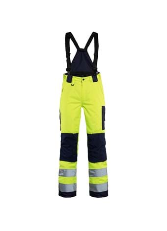Quilt-foret vinter buks fremstillet af et slidstærkt vind- og vandtæt materiale med tapede sømme. Buksen har snefang med velcro åbning og aftagelige seler. For optimal sikkerhed og beskyttelse mod vejr, er buksen certificeret til høj synlighed og beskyttelse mod regn og kulde. Certificeret i henhold til EN ISO 20471 klasse 2, EN ISO 20471 klasse 3 sammen med 4872. EN 342 og EN 343.