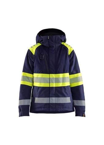 En meget slidstærk high vis vinterjakke i klasse 1 designet til kvinder. Jakken har et quiltet for, er vind- og vandtæt med tapede sømme og har en behagelig, rummelig og justerbar pasform for ekstra komfort. Hætten er aftagelig og tilpasset til hjelme og høreværn. Certificeret i henhold til EN ISO 20471 Klasse 1. Samcertificeringsgruppe D. Findes også i herremodel 4480.