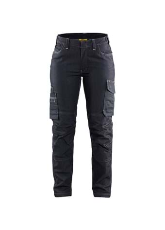 Servicebukser til kvinder, der er lavet af slidstærkt CORDURA® Denim stretch. Bukserne har en elastisk talje og materialet er slidstærkt og glat. Smarte lommer, formsyede ben for øget komfort og sorte refleks detaljer for øget synlighed.