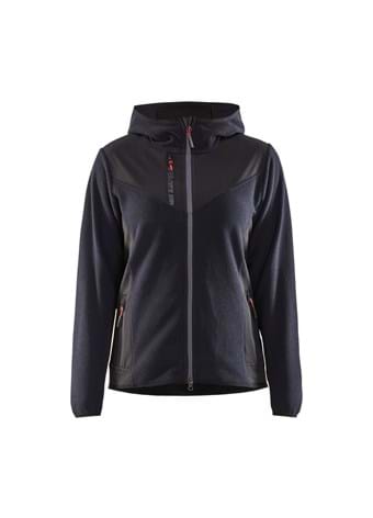 Strikket jakke med hætte i et smart design og komfortabel fleece i høj kvalitet. Jakken med to-vejs lynlås foran, har et nyt unikt materiale, der bedst kan beskrives som en tredimensionel fleece. Det børstede materiale giver jakken et udtryk af fleksibilitet, komfort og varme, når det er nødvendigt. Jakken er forstærket med softshell materiale på ærmer, skuldre og ryg for øget slidstyrke, og har forbedret ventilation, da der ikke er softshell under armene. 5941 har fremragende overflader til logo, og er velegnet til både fritid og arbejde. Fås også i herremodel 5940