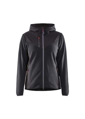 Strikket jakke med hætte i et smart design og komfortabel fleece i høj kvalitet. Jakken med to-vejs lynlås foran, har et nyt unikt materiale, der bedst kan beskrives som en tredimensionel fleece. Det børstede materiale giver jakken et udtryk af fleksibilitet, komfort og varme, når det er nødvendigt. Jakken er forstærket med softshell materiale på ærmer, skuldre og ryg for øget slidstyrke, og har forbedret ventilation, da der ikke er softshell under armene. 5941 har fremragende overflader til logo, og er velegnet til både fritid og arbejde. Fås også i herremodel 5940
