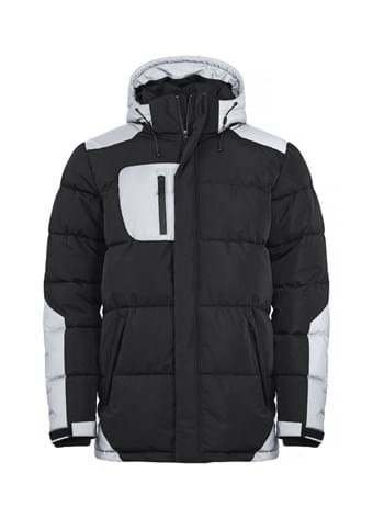 En varm polstret jakke fremstillet til kolde og mørke forhold. Refleks detaljer og aftagelig justerbar hætte. Vandtætte SBS-lynlåse på bryst og lommer foran. To store inderlommer i mesh. Løbegang i forneden til mænd og til damer i taljen. Manchetter med justerbar velcro med indvendig 2x2 ribmanchet.