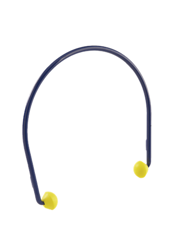 Lightweight bracket hearing protection with plugs that can be washed or replaced. Can be used under the chin and behind the head.
