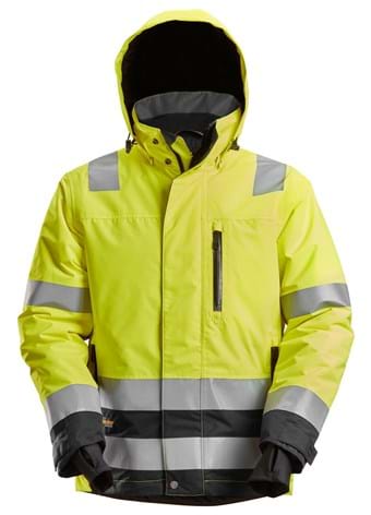 1132-6604Warm and waterproof fluorescent jacket designed for all kinds of work in cold and wet winter conditions. Class 3 certification according to EN 20471, which ensures optimal visibility and increased safety. Heat-sealed reflective strips. 3-layer CORDURA® reinforced elbows. Removable and adjustable hood. Pocket with AquaGuard® spiral zip and ID card holder.