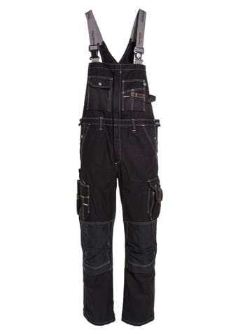 Functional bib 'n' brace in a durable and heavyweight cotton twill. Reinforced kneepad pockets in HTPA Dobby. Adjustable braces with fixed lock closing. Two-way zipper at front. Adjustable waist with buttons. Left chest pocket with flap and concealed keyring holder. Right chest pocket with pen pockets and knife button with loop. Side pockets with hidden access. Left cargo pocket with mobile pocket. Right cargo pocket with tool/pen pockets. Ruler pocket and knife button with loop. HTPA Dobby lined hip pockets. Two hammer loops. Adjustable kneepad pockets in HTPA Dobby. Contrast stitching. Pre-Washed. Long and short sizes - will be modified after order. Approximately 5 days extra delivery time.