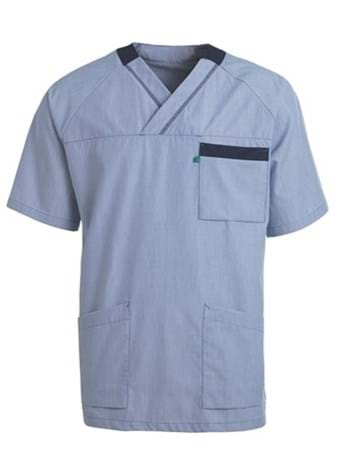 ns 3361. V-neck. Colored flatlock stitching. Raglan sleeves. Colored herd on collar and chest pocket. 1 breast pocket. 2 hip pockets. Slit in the sides. Size indication with colored label.