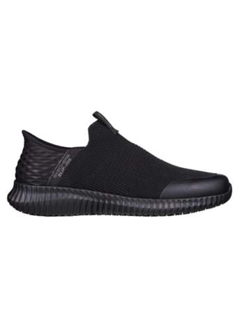 1001698New from Sketchers! Non-slip work shoe with air-cooled memory foam insole that moulds itself around your foot for optimal comfort. New slip-on technology with fixed heel design provides support, stability and comfort. Simply and comfortably slip into these shoes without using your hands!
