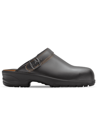 A classic safety tray with top of sturdy, PU-coated leather. The insole is made of Texon, and closest to the foot there is a soft latex foot bed, which is lined with moisture-absorbing cambrelle material. The insole is also ergonomically designed with both Pelotte and fog. The outsole is a non -slip sole that is certified in accordance with SRC. The heel strap is elastic and can be adjusted to fit all users.