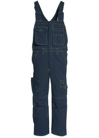 Inherent Flame Retardant bib 'n' brace with front zip in a material with high durability, low weight and good Flame Retardant properties. Flame Retardant bib 'n' brace with contrast stitching and front zip. Adjustable braces with hidden fixed lock closing. Chest pockets, one with flap. Hidden keyring holder. Side pockets. Kneepad pockets. Double cargo pockets with mobile phone pocket and ruler pocket. Hip pockets. Adjustable waistband. Long and short sizes - will be produced after order. Approximately 5 days extra delivery time.